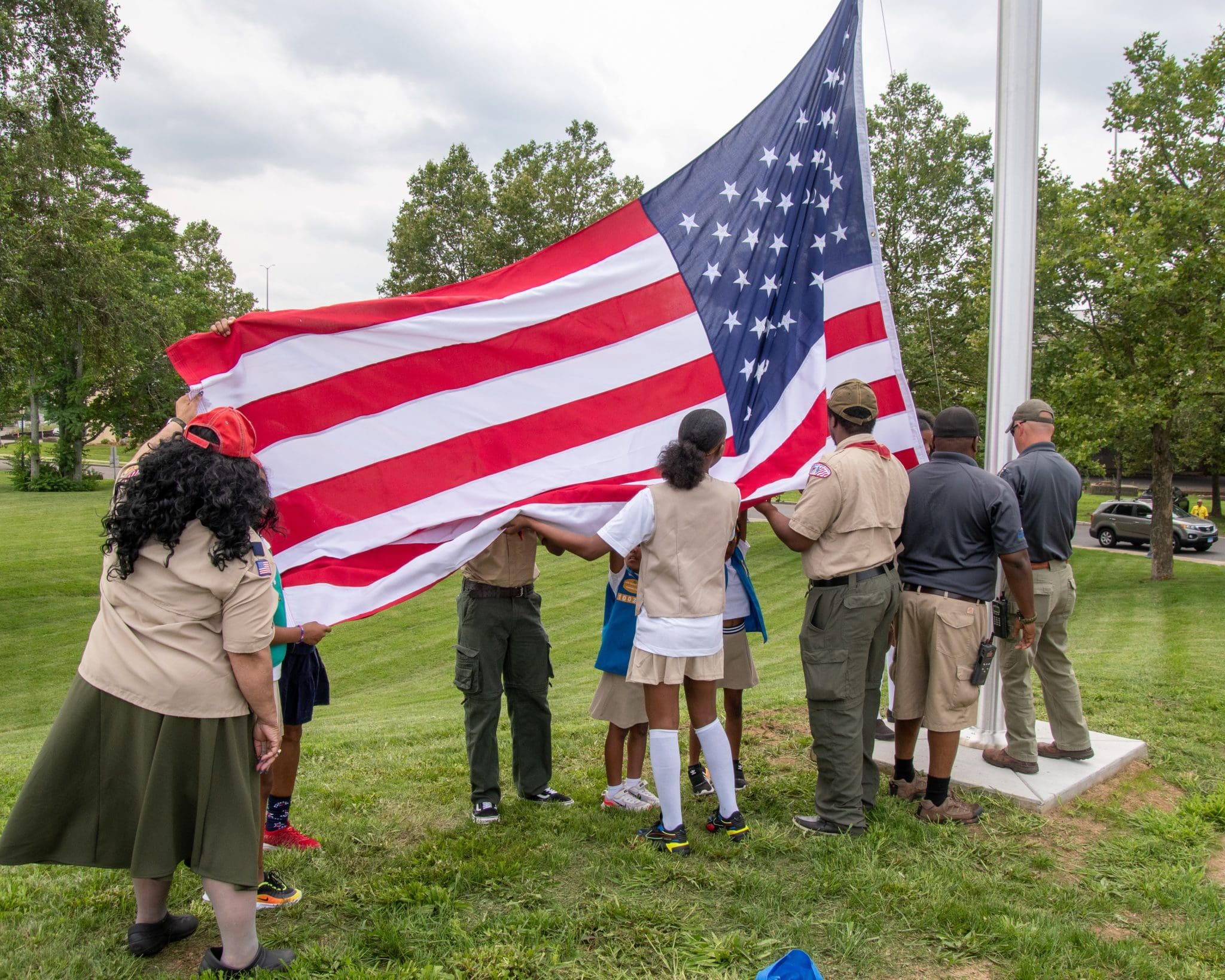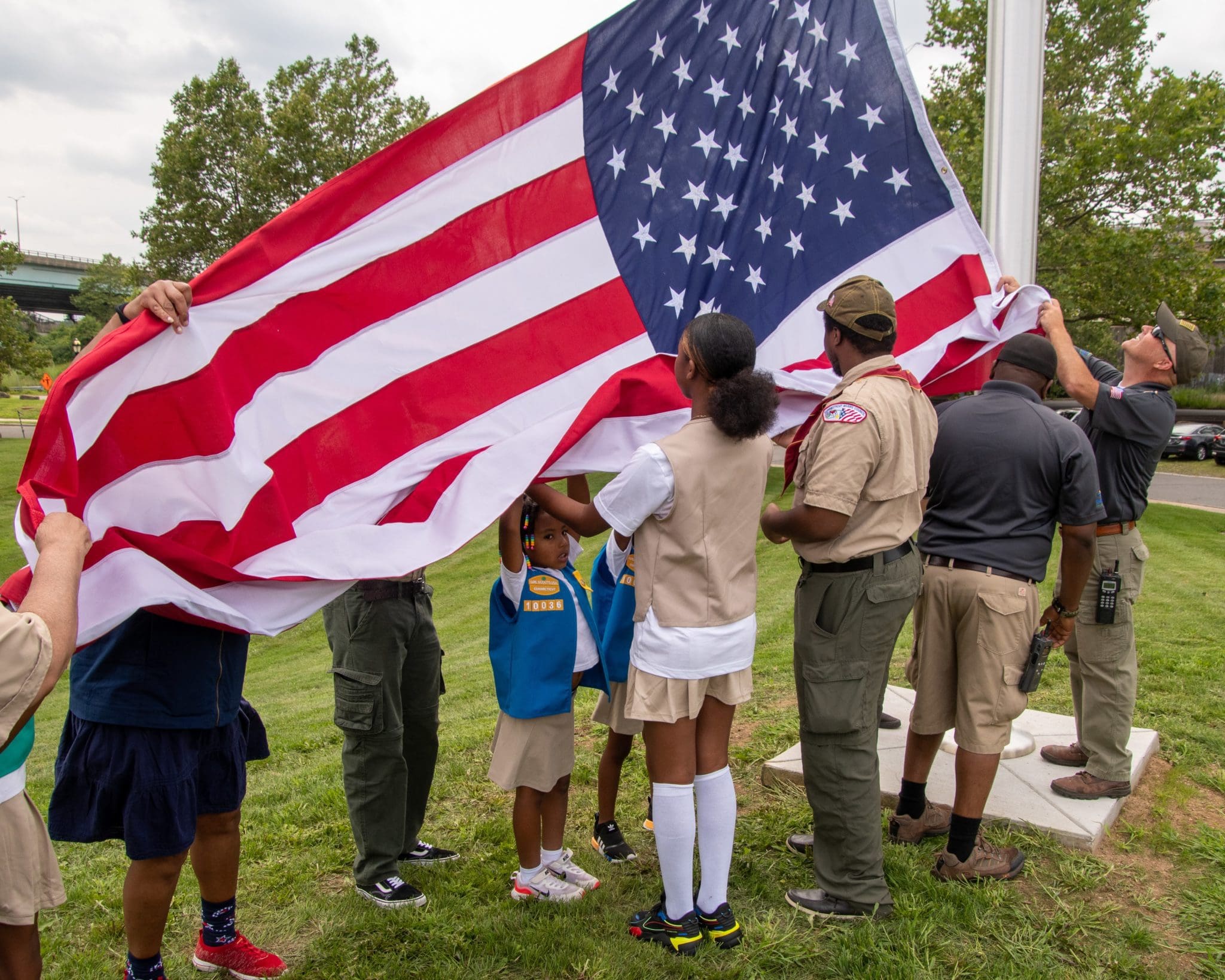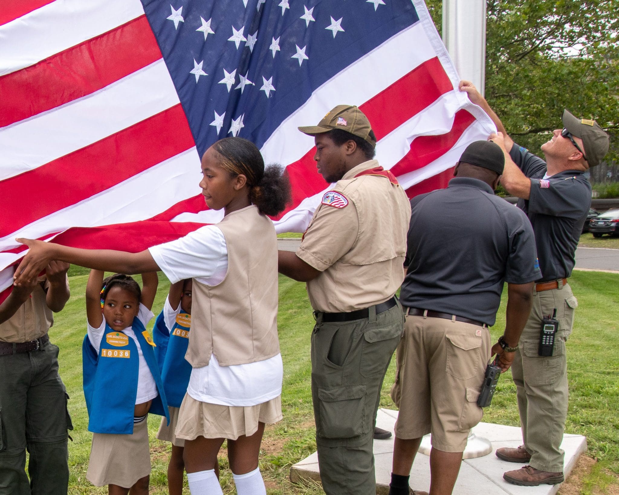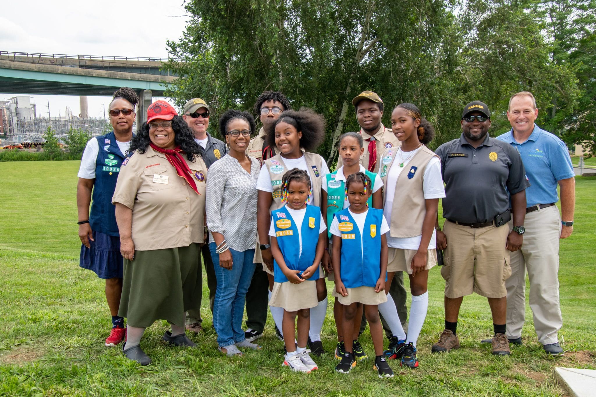 Hartford Scouts Raise Flag in Charter Oak Landing Members of Hartford’s Girl Scouts Troop 10036 and Boy Scouts Troop 2 worked together to raise the flag on our newly installed flagpole in Charter Oak Landing. t was such a pleasure to meet them, and we hope to see them in our parks again soon.