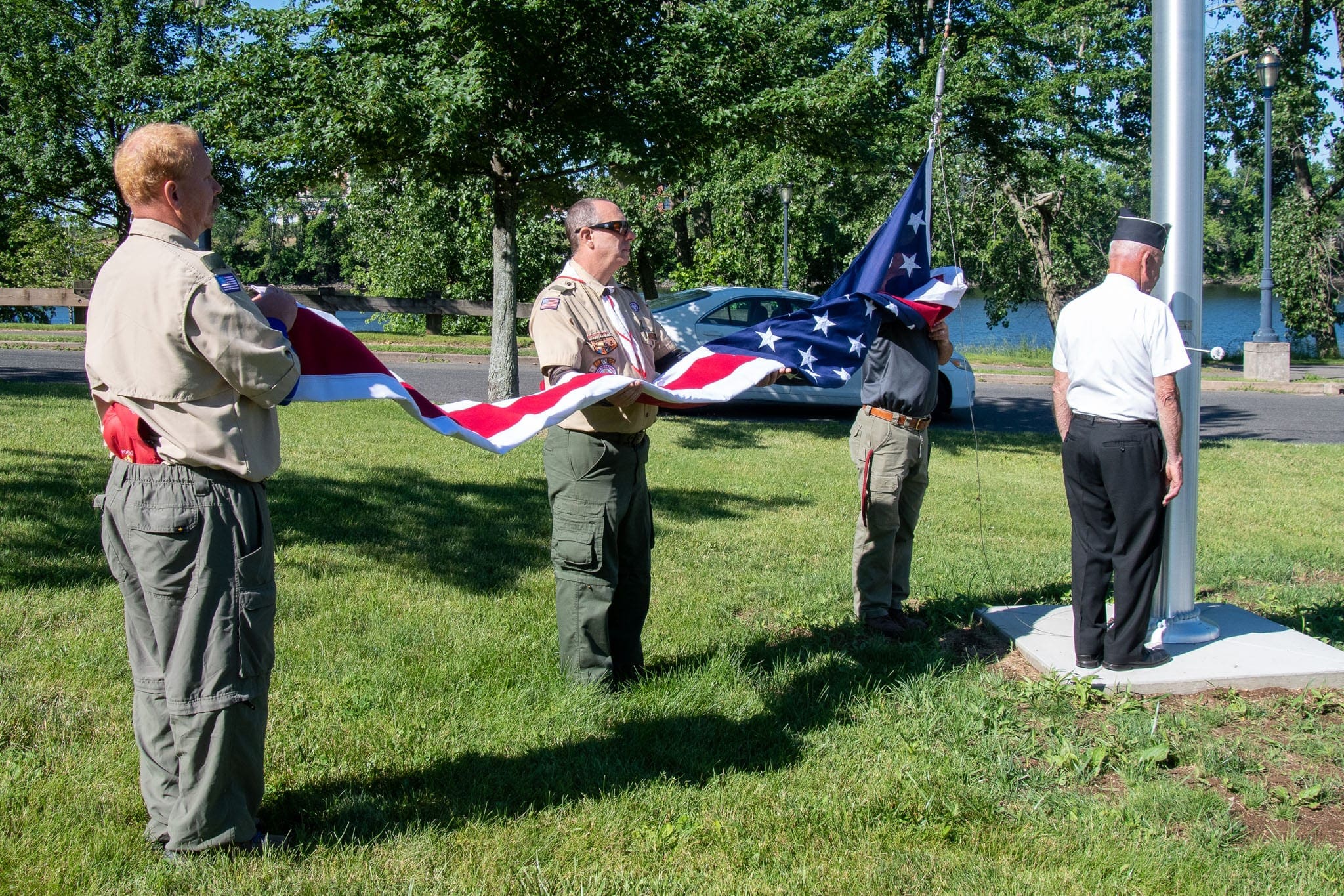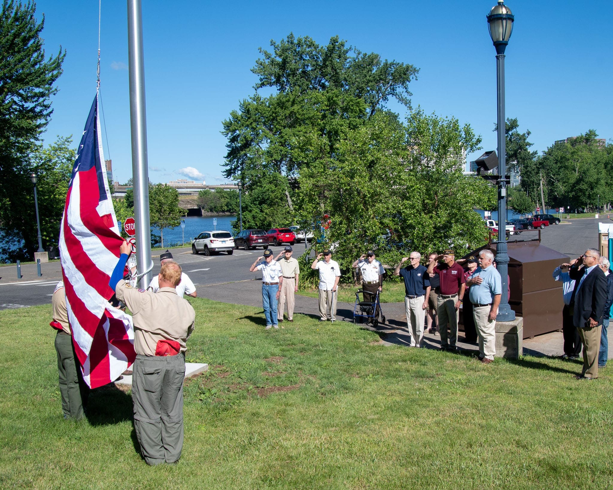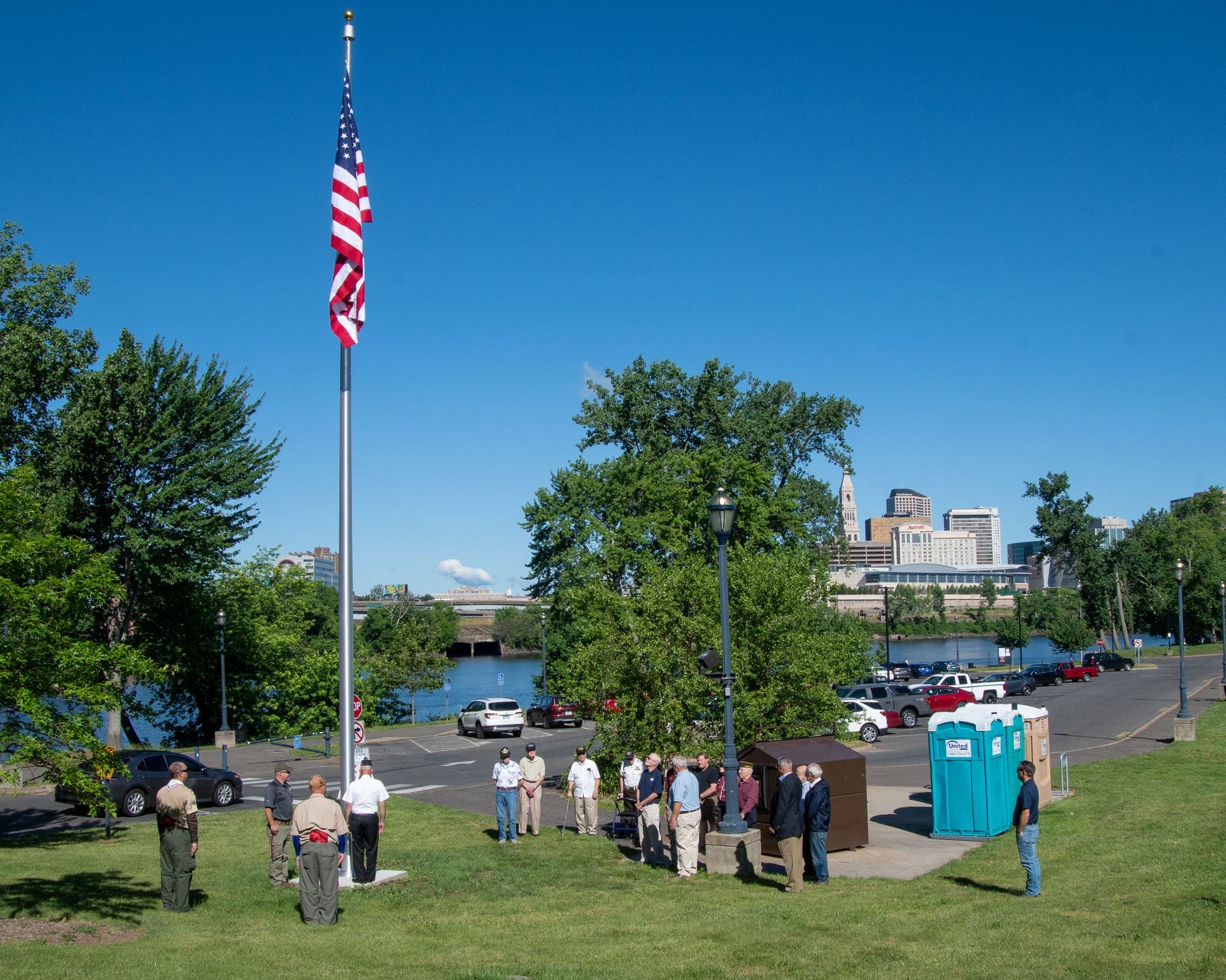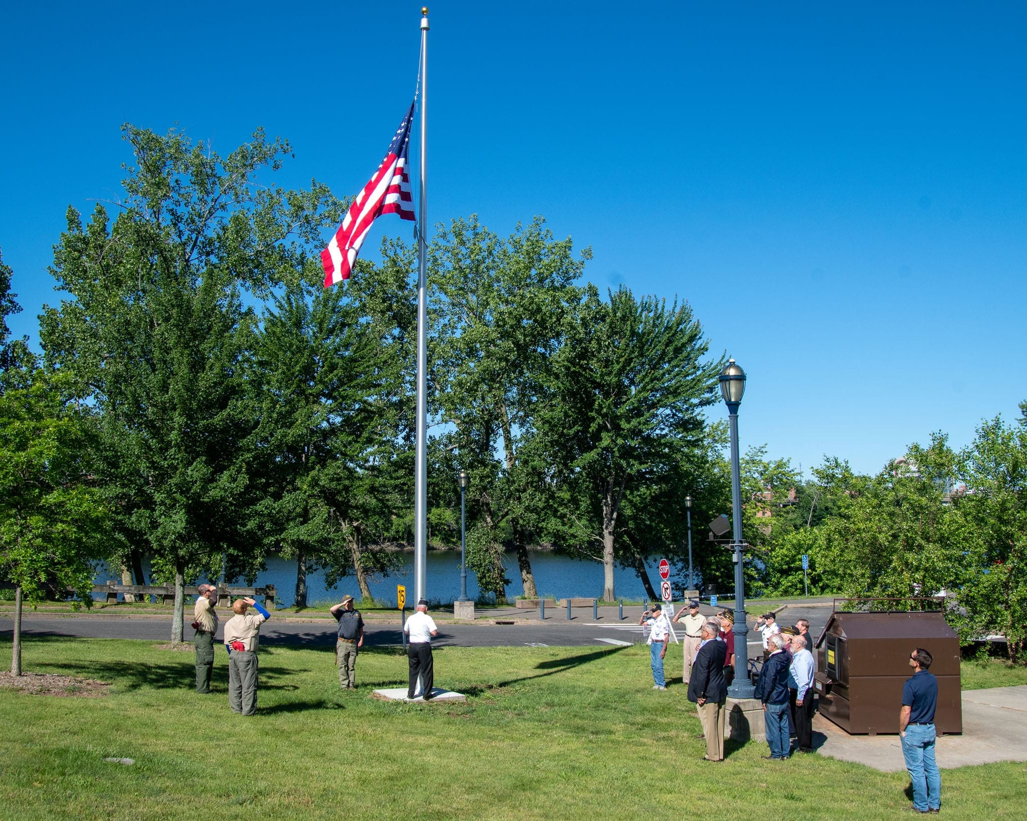 On Wednesday, June 23, Laurie Bastarache, a U.S. Marine Corps veteran of the Korean War, raised the flag on our newly installed flagpole in Great River Park. East Hartford Veterans from all military branches, including Riverfront Ranger Dan Lareau, were in attendance, commemorating the 71st anniversary of the day the Korean War began, June 25, 1950.Â