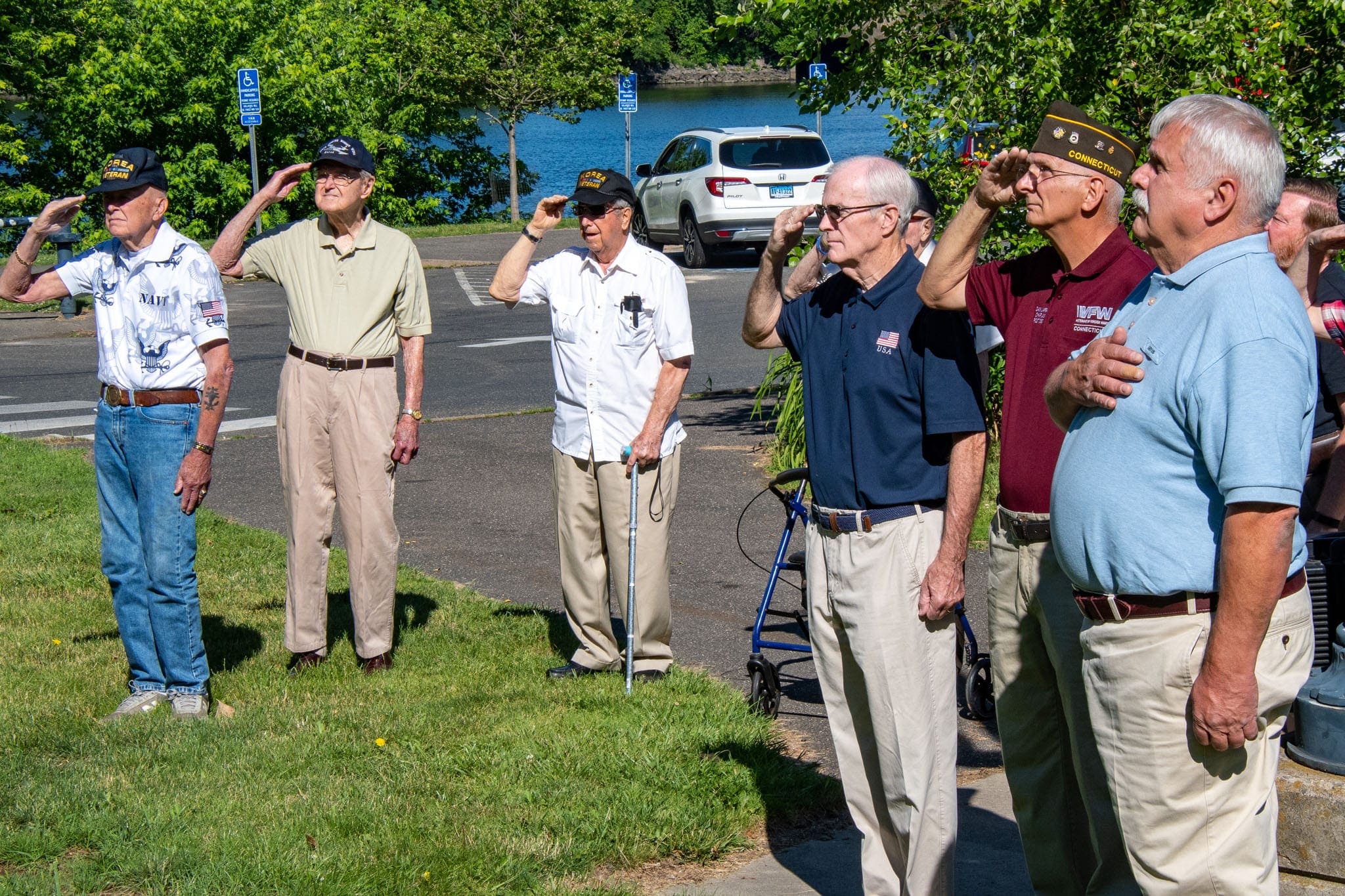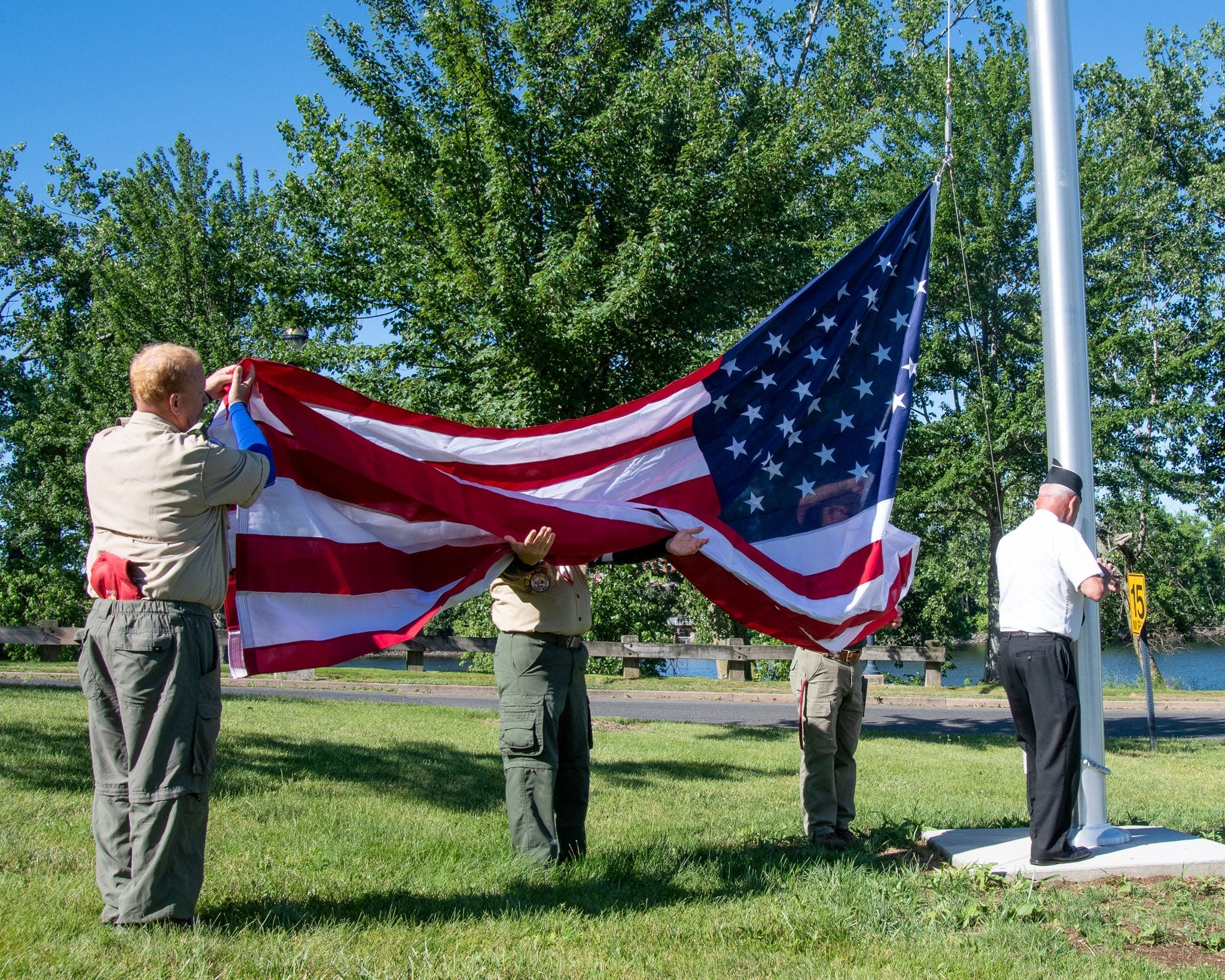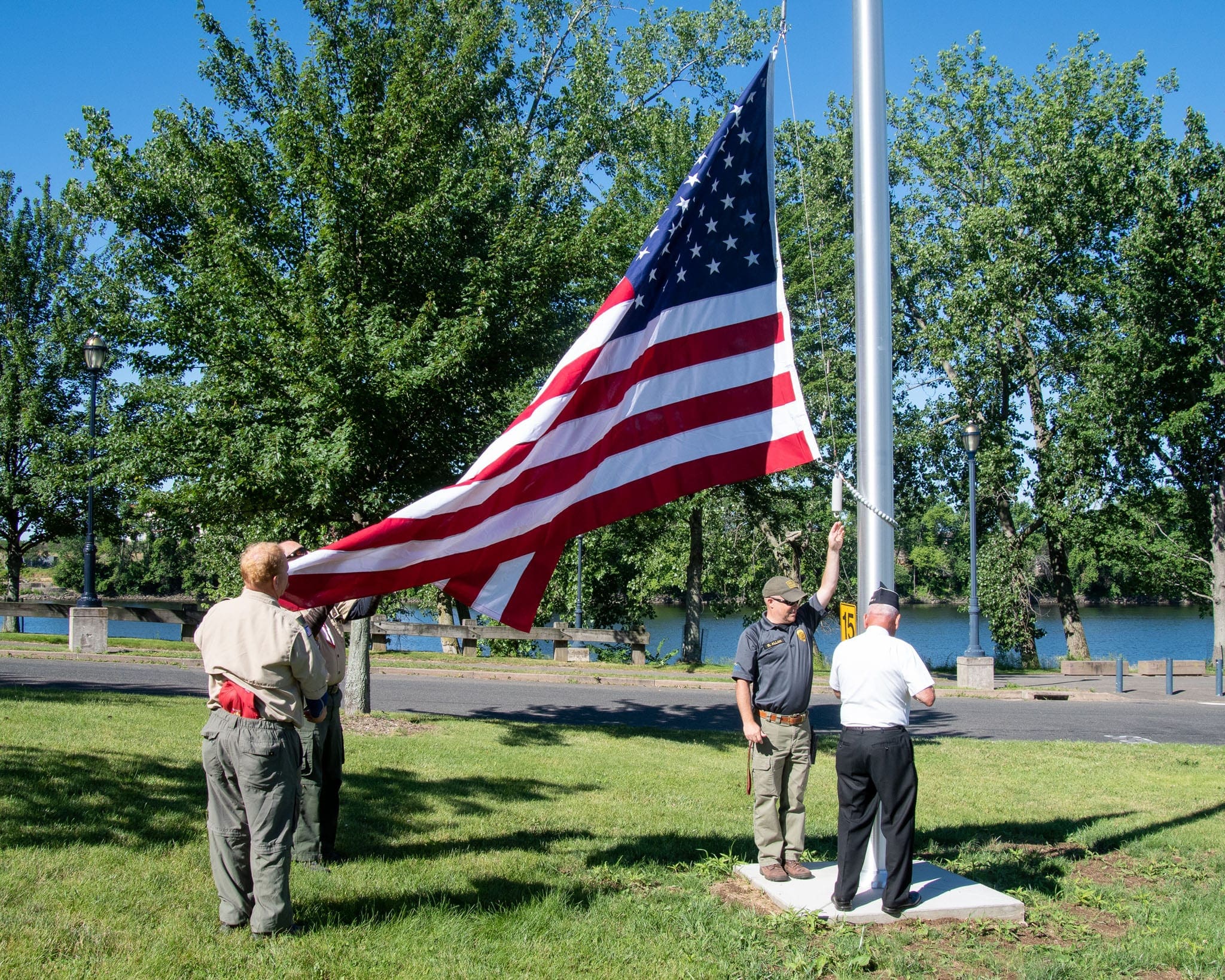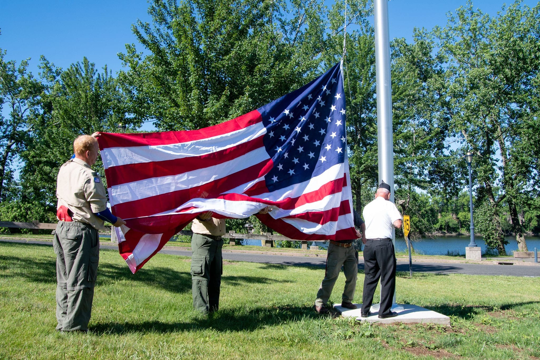 On Wednesday, June 23, Laurie Bastarache, a U.S. Marine Corps veteran of the Korean War, raised the flag on our newly installed flagpole in Great River Park. East Hartford Veterans from all military branches, including Riverfront Ranger Dan Lareau, were in attendance, commemorating the 71st anniversary of the day the Korean War began, June 25, 1950.Â