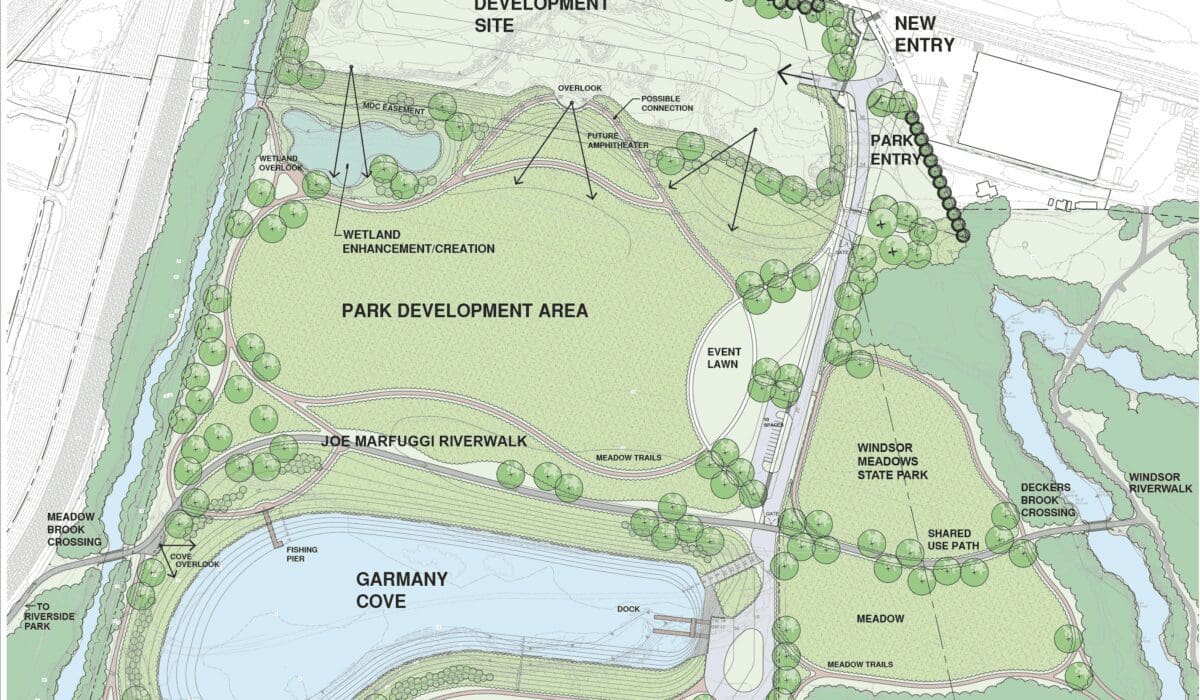 Our future park represents a once-in-a-generation opportunity to transform more than 60 acres of riverfront land into a thriving, resilient community space. Currently disconnected from the surrounding neighborhoods of Hartford and Windsor, this stretch of the river will be reshaped to provide unprecedented access to the Connecticut River and a dynamic new extension of the regional trail network.