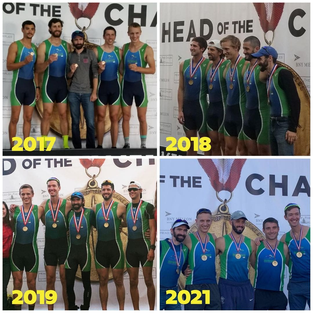 2021: Our Men’s Club Four is the fastest at the Head of the Charles for the fourth consecutive time. Our Men’s Team brought home the championship trophy from USRowing’s Masters Nationals for the second time in four years. Our Men’s and Women’s teams combined for a strong second-place finish in the Club Championship!