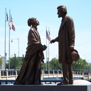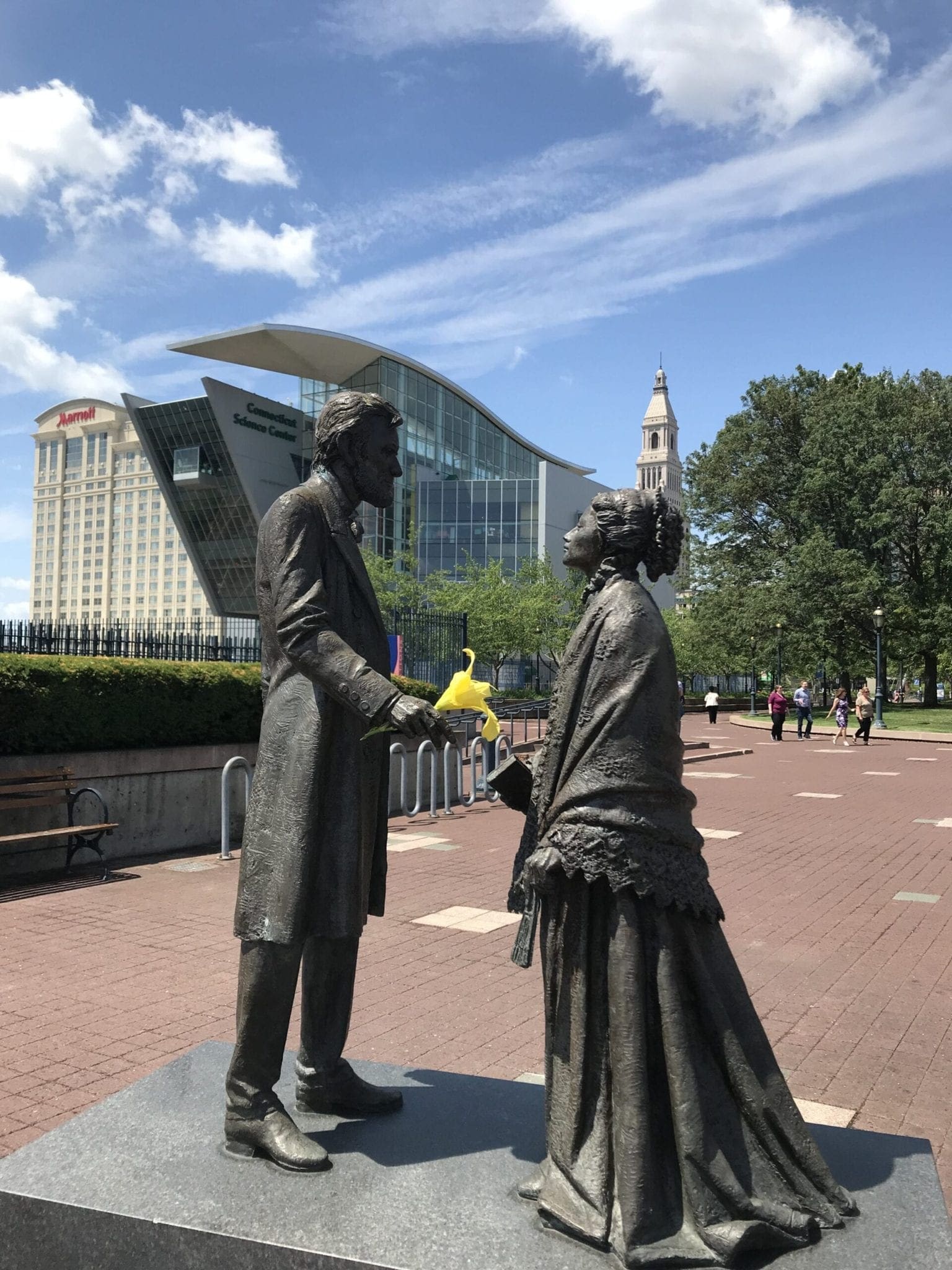 Doris Kearns Goodwin helped launch our mobile tour of the sculpture walk on June 24, 2016. Ms. Goodwin, the famed historian, and presidential biographer is our mobile tour narrator. In addition to sharing information about the artists, stories about Lincoln, and excerpts from her book, Team of Rivals: The Political Genius of Abraham Lincoln, Ms. Goodwin expressed delight in the relationship of the sculptures to stories about Lincoln and with the selected excerpts. Together, the information combines to provide great background and more in-depth insight into Lincoln, as his values continue to inspire integrity, hard work, perseverance, and humanism.